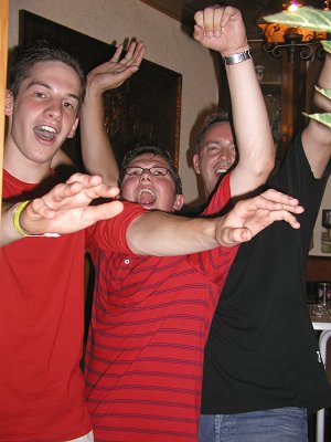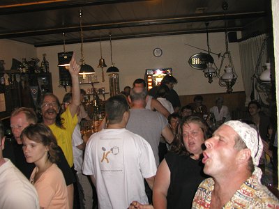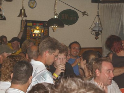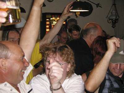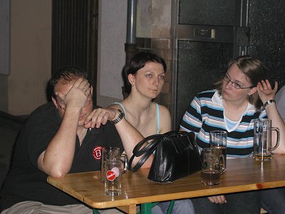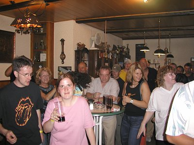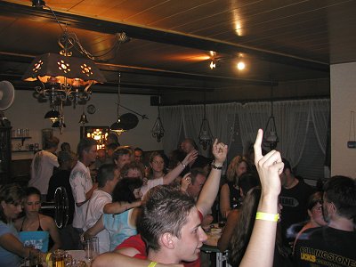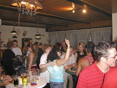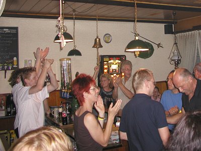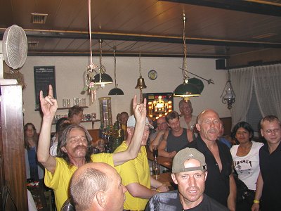 Die Pause zwischendurch haben sich alle verdient. Draußen war die Luft um einiges besser, denn 30°C in der Kneipe... das bedeutet normalerweise HITZEFREI.